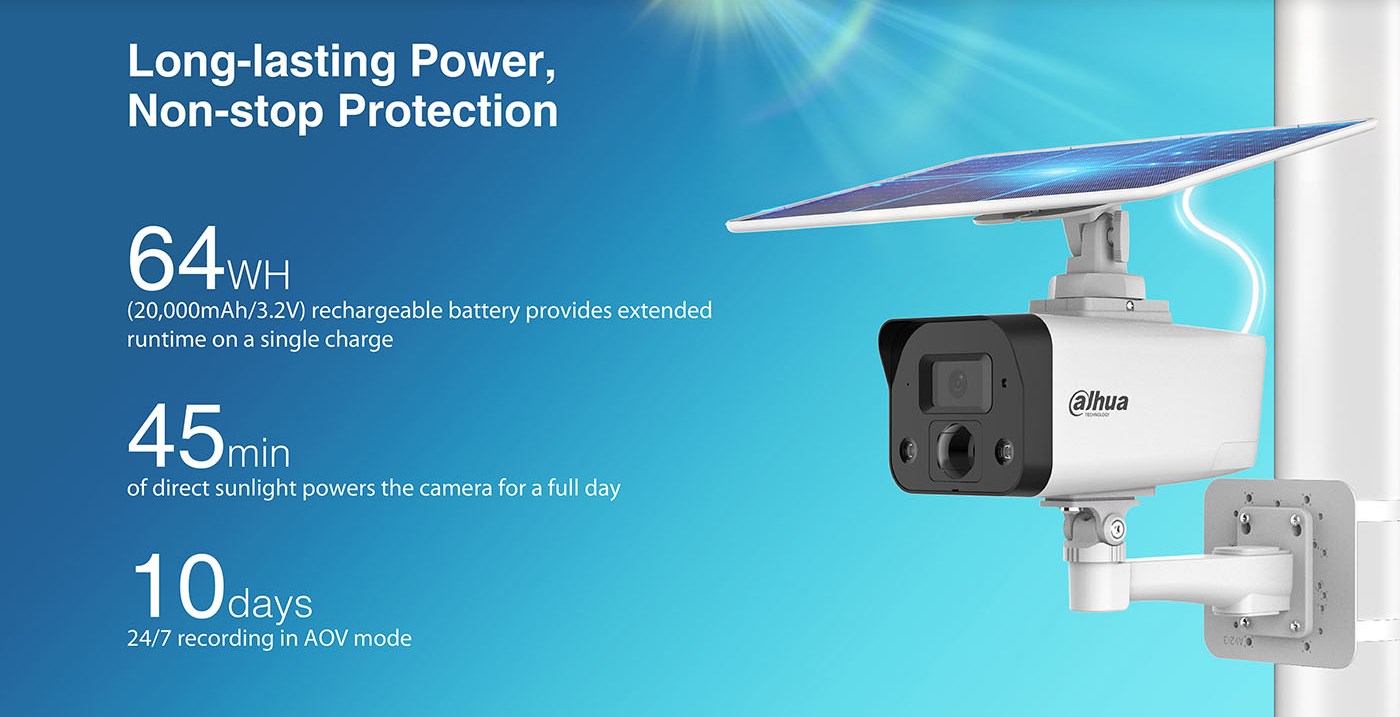 KIT/DH-PFM378-B125-CB/DH-SD49425DB-HNY-GQ-EAU Sistem integrat de monitorizare solara, 1/2.8" CMOS, 4 MP, 5–125mm, 2560×1440, 0.005 lux F1.6, IR: 100m, Zoomx25, 4G, Perimeter protect., Face detect., SMD 3.0, Solar Panel 125 W/18.8 VDC, Controler MPPT